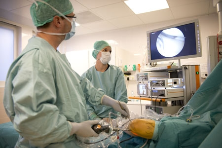 - Operationen foregår gennem 2 små kikkerthuller på forsiden af knæet